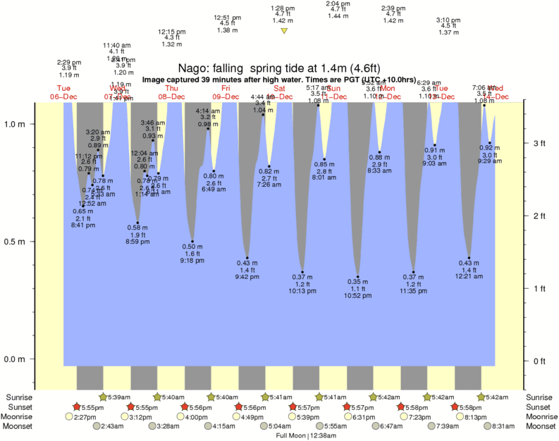 Forecast wind and swell just offshore from Nago around the time the photo was taken
