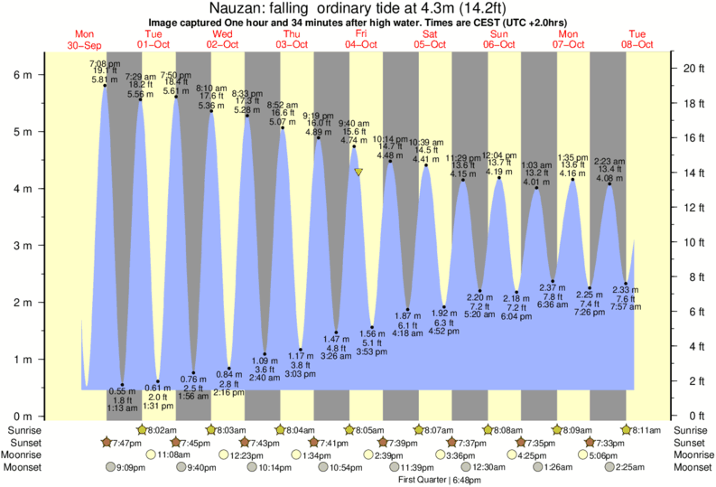 Image captured One hour and 34 minutes after high water (falling ordinary tide). Tide height was 4.3m (14.2 ft). Range 5.40m (17.7 ft). Toggle tide graph