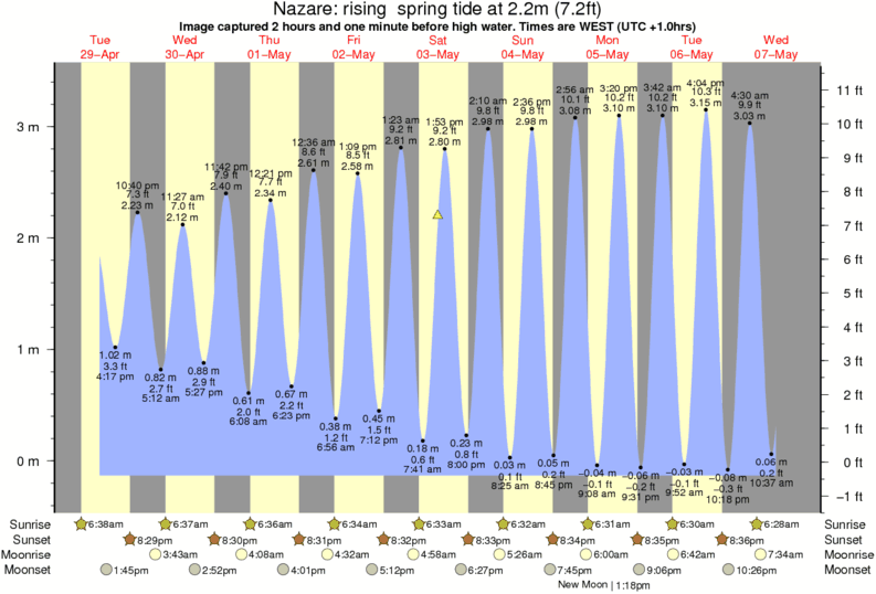 Forecast wind and swell just offshore from Nazare around the time the photo was taken
