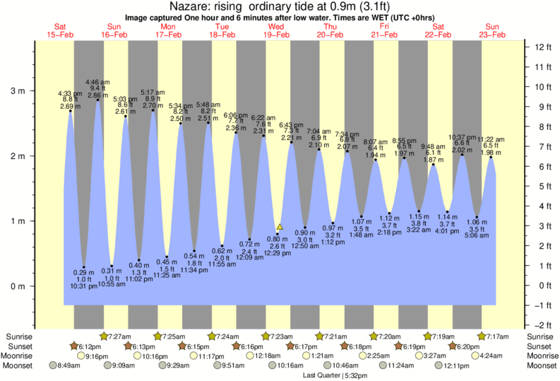 Forecast wind and swell just offshore from Nazare around the time the photo was taken