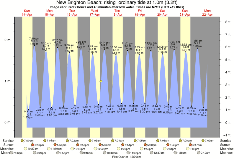 Image captured 2 hours and 48 minutes after low water (rising ordinary tide). Tide height was 1.0m (3.2 ft). Range 2.45m (8.0 ft). Toggle tide graph