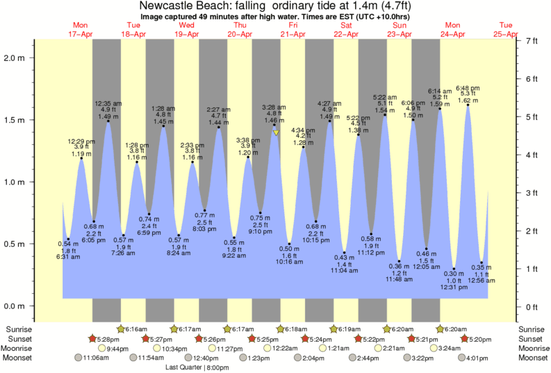 Forecast wind and swell just offshore from Newcastle Beach around the time the photo was taken