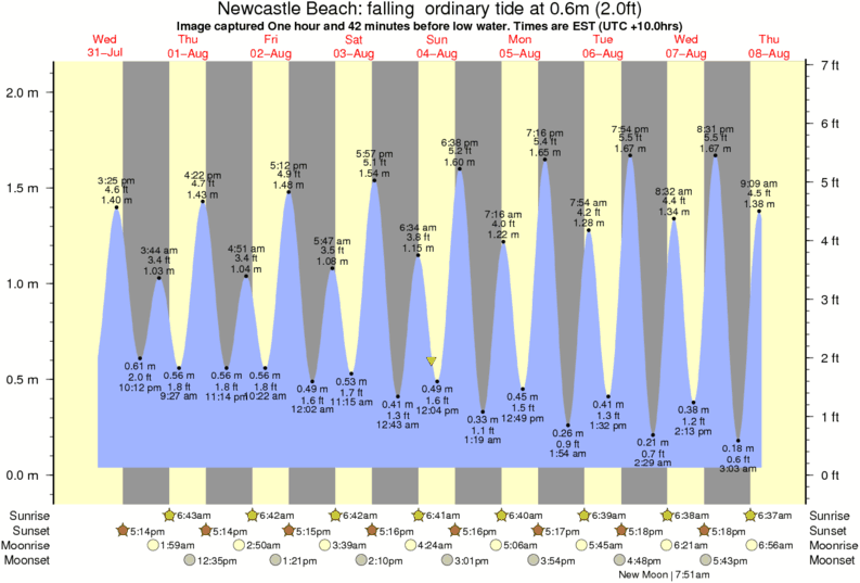 Forecast wind and swell just offshore from Newcastle Beach around the time the photo was taken