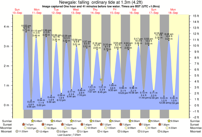 Image captured One hour and 40 minutes before low water (falling ordinary tide). Tide height was 1.3m (4.2 ft). Range 4.41m (14.5 ft). Toggle tide graph
