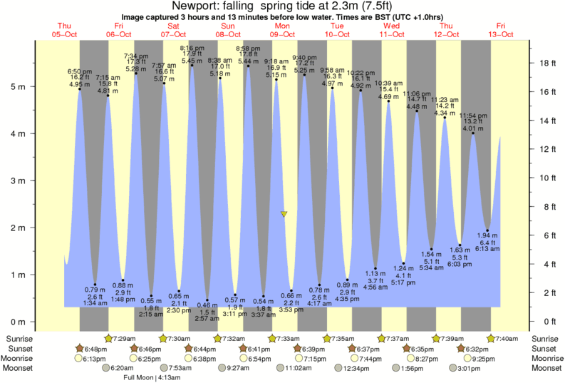 Image captured 3 hours and 13 minutes before low water (falling spring tide). Tide height was 2.3m (7.5 ft). Range 5.16m (16.9 ft). Toggle tide graph