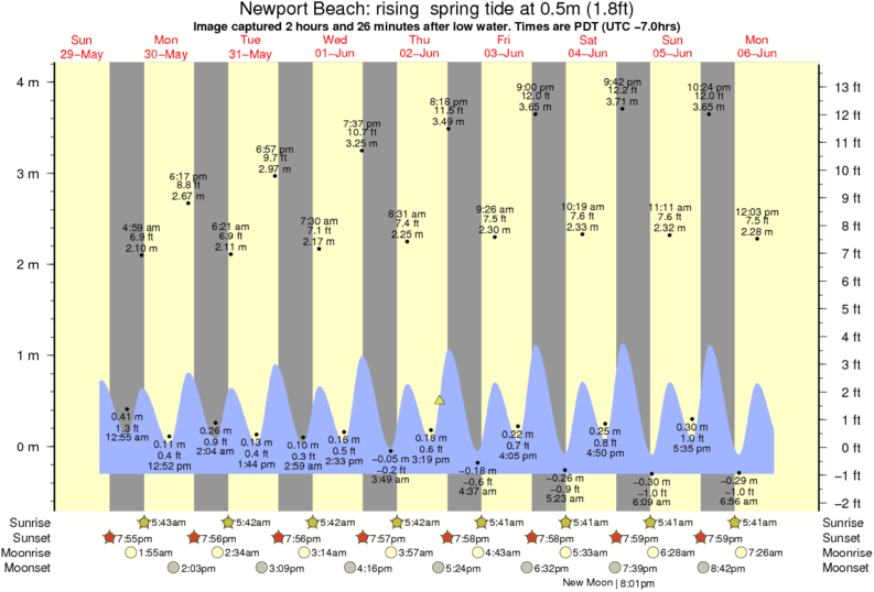 Forecast wind and swell just offshore from Newport Beach around the time the photo was taken