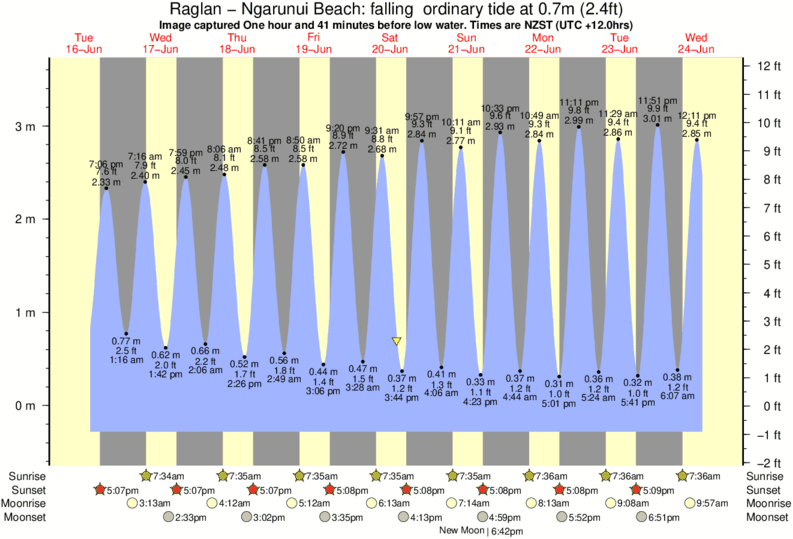 Forecast wind and swell just offshore from Raglan - Ngarunui Beach around the time the photo was taken