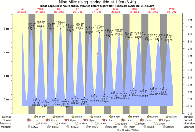 Forecast wind and swell just offshore from Nine Mile around the time the photo was taken