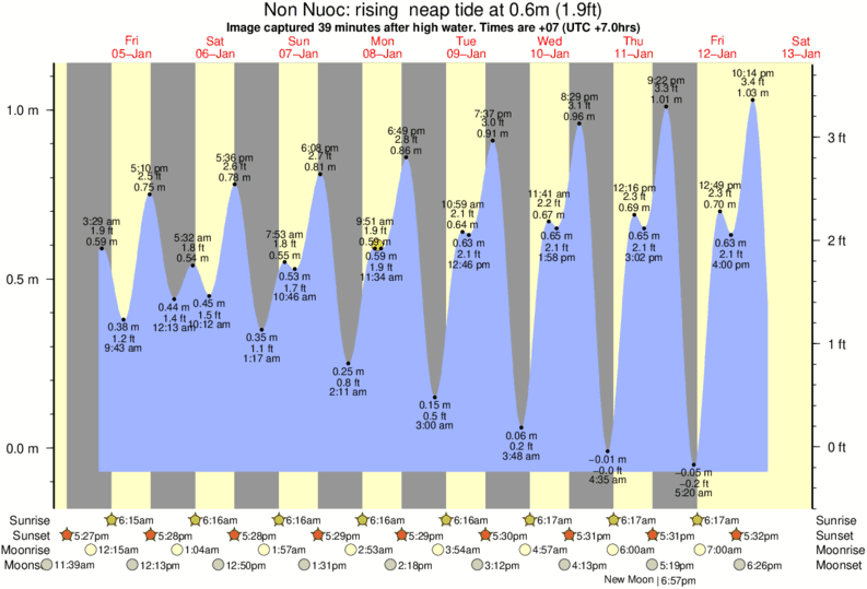 Forecast wind and swell just offshore from Non Nuoc around the time the photo was taken