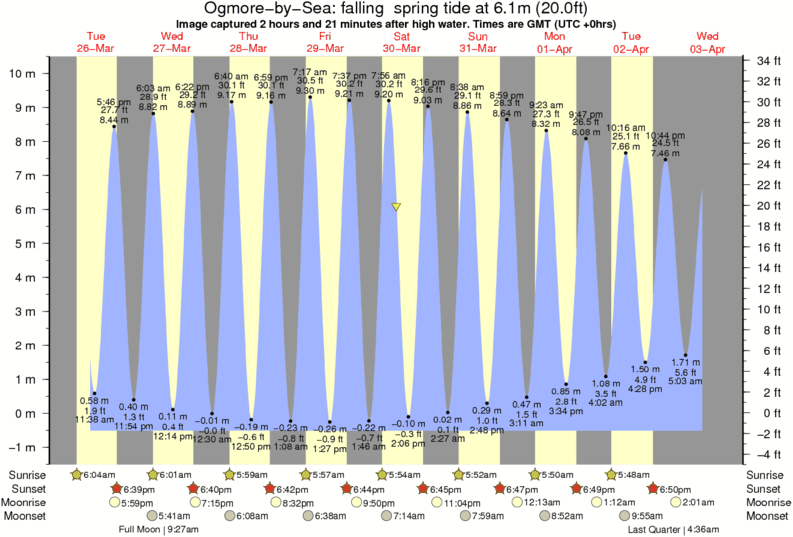 Image captured 2 hours and 21 minutes after high water (falling spring tide). Tide height was 6.1m (20.0 ft). Range 10.01m (32.8 ft). Toggle tide graph