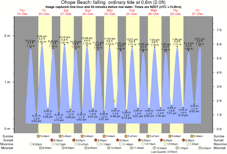 Forecast wind and swell just offshore from Ohope Beach around the time the photo was taken