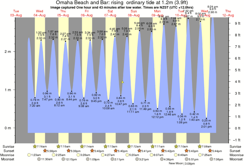 Forecast wind and swell just offshore from Omaha Beach and Bar around the time the photo was taken