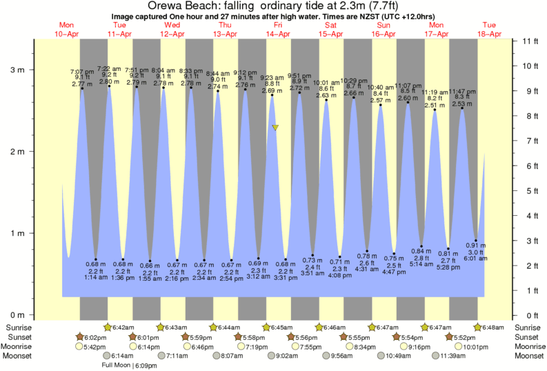 Forecast wind and swell just offshore from Orewa Beach around the time the photo was taken