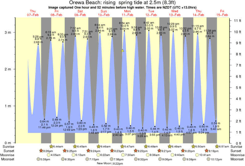 Forecast wind and swell just offshore from Orewa Beach around the time the photo was taken