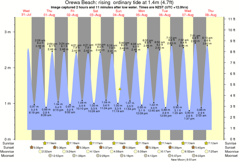 Image captured 2 hours and 11 minutes after low water (rising ordinary tide). Tide height was 1.4m (4.7 ft). Range 2.87m (9.4 ft). Toggle tide graph