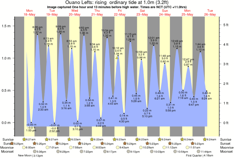 Forecast wind and swell just offshore from Ouano Lefts around the time the photo was taken