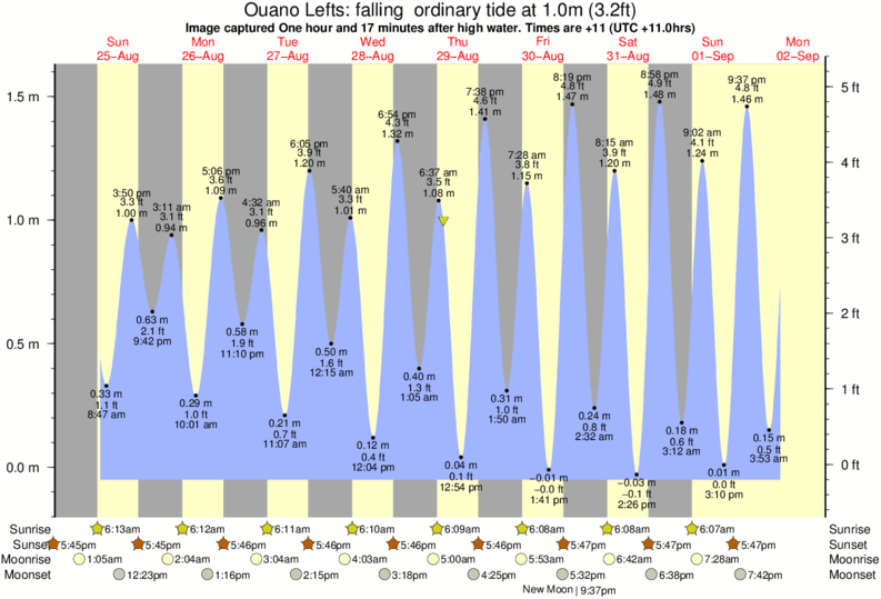 Forecast wind and swell just offshore from Ouano Lefts around the time the photo was taken