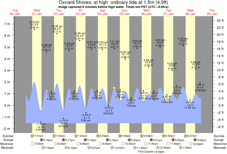 Forecast wind and swell just offshore from Oxnard Shores around the time the photo was taken
