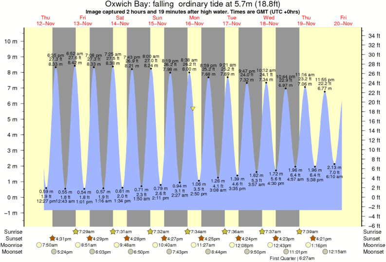 Image captured 2 hours and 19 minutes after high water (falling ordinary tide). Tide height was 5.7m (18.8 ft). Range 10.63m (34.9 ft). Toggle tide graph