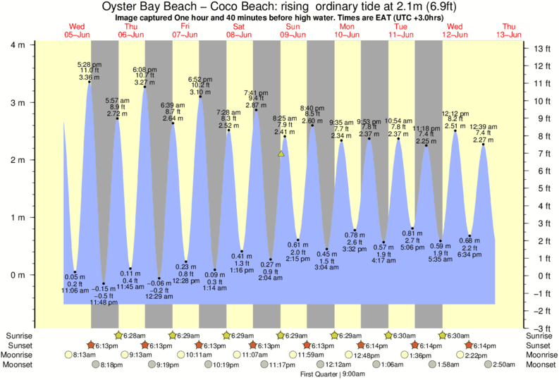 Forecast wind and swell just offshore from Oyster Bay Beach - Coco Beach around the time the photo was taken