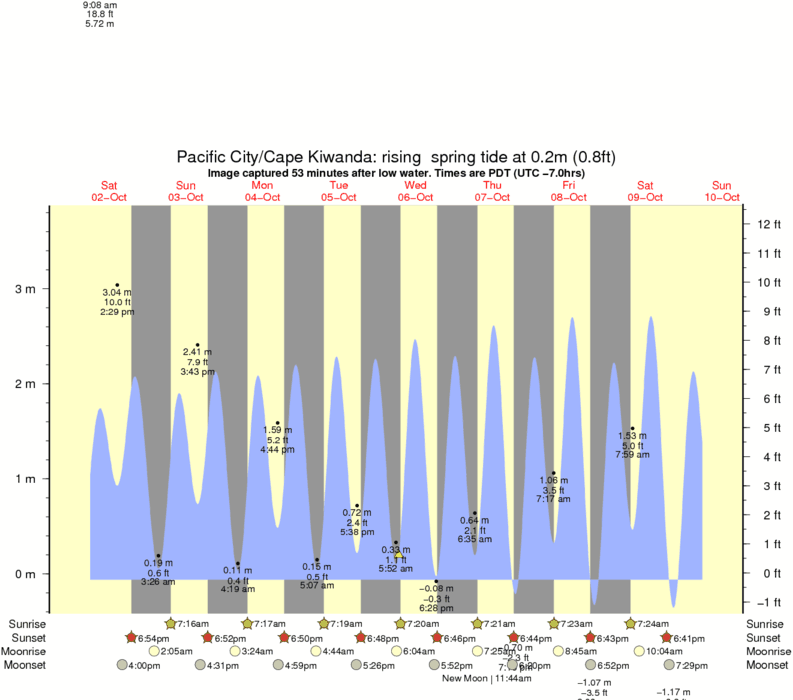 Image captured 53 minutes after low water (rising spring tide). Tide height was 0.2m (0.8 ft). Range 3.58m (11.7 ft). Toggle tide graph