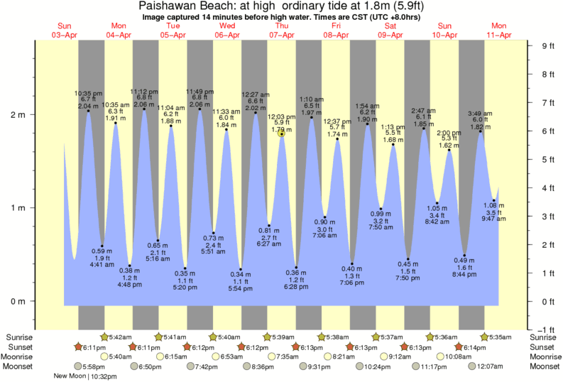 Forecast wind and swell just offshore from Paishawan Beach around the time the photo was taken