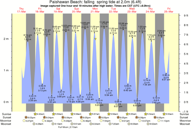 Image captured One hour and 19 minutes after high water (falling spring tide). Tide height was 2.0m (6.4 ft). Range 2.59m (8.5 ft). Toggle tide graph