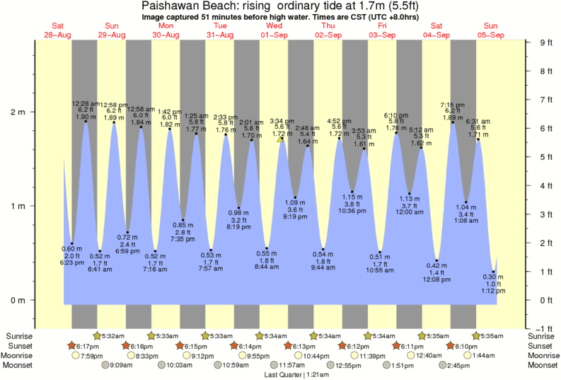 Forecast wind and swell just offshore from Paishawan Beach around the time the photo was taken