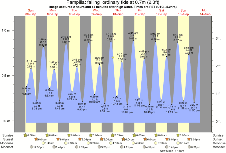 Image captured 2 hours and 14 minutes after high water (falling ordinary tide). Tide height was 0.7m (2.3 ft). Range 1.07m (3.5 ft). Toggle tide graph
