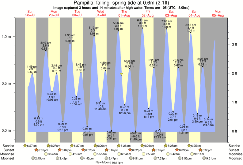 Image captured 3 hours and 14 minutes after high water (falling spring tide). Tide height was 0.6m (2.1 ft). Range 1.11m (3.6 ft). Toggle tide graph