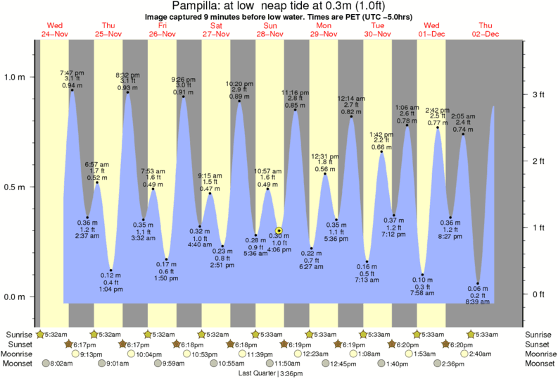 Image captured 9 minutes before low water (at low neap tide). Tide height was 0.3m (1.0 ft). Range 1.09m (3.6 ft). Toggle tide graph