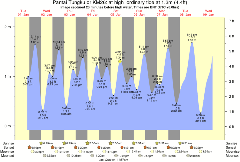 Forecast wind and swell just offshore from Tungku Beach or KM26 around the time the photo was taken