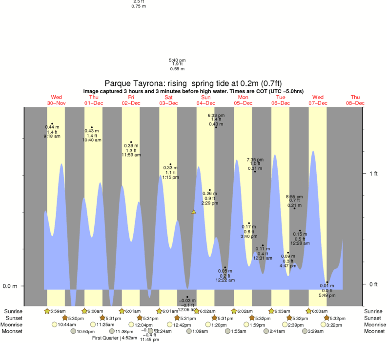 Forecast wind and swell just offshore from Parque Tayrona around the time the photo was taken