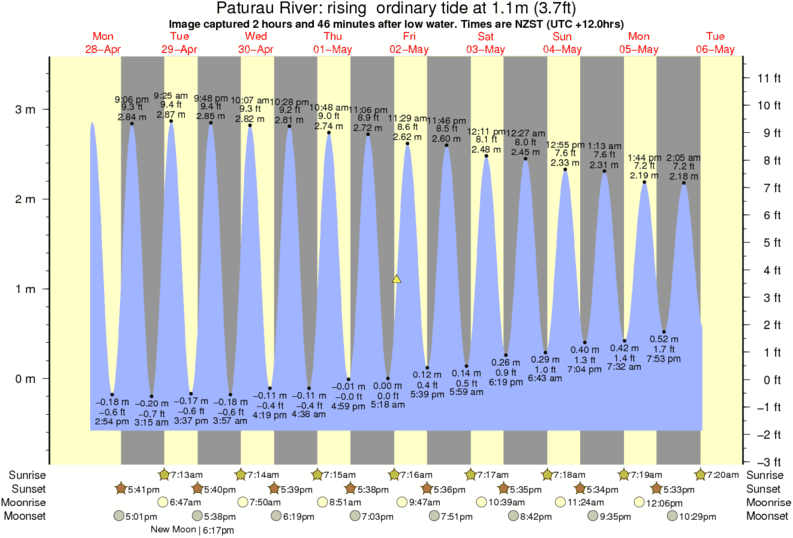 Forecast wind and swell just offshore from Paturau River around the time the photo was taken