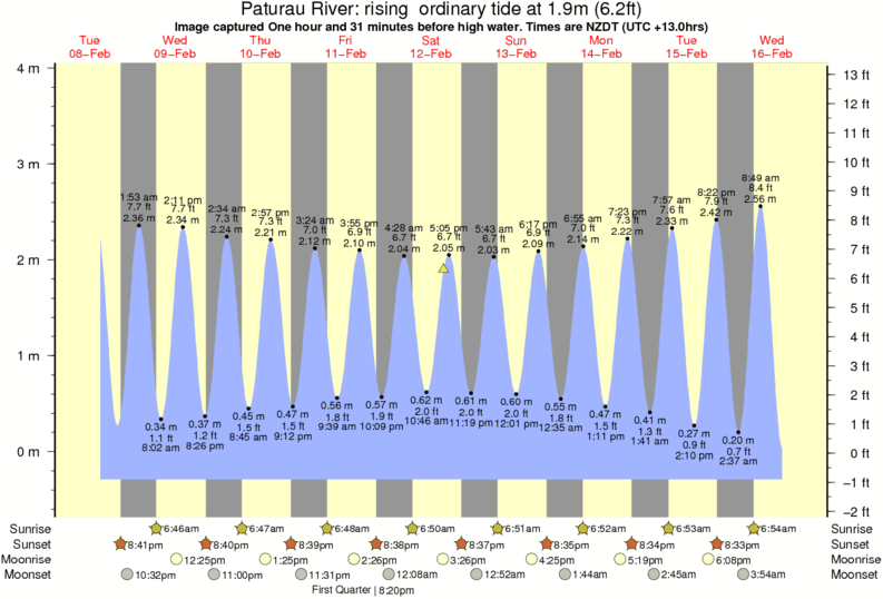 Forecast wind and swell just offshore from Paturau River around the time the photo was taken