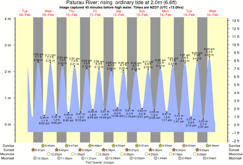 Forecast wind and swell just offshore from Paturau River around the time the photo was taken