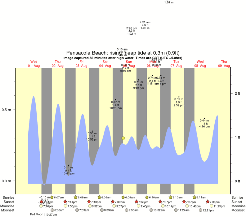 Forecast wind and swell just offshore from Pensacola Beach around the time the photo was taken