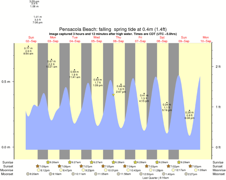 Forecast wind and swell just offshore from Pensacola Beach around the time the photo was taken