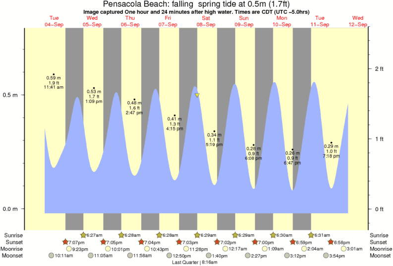Forecast wind and swell just offshore from Pensacola Beach around the time the photo was taken