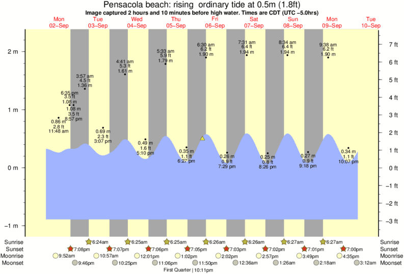 Forecast wind and swell just offshore from Pensacola beach around the time the photo was taken