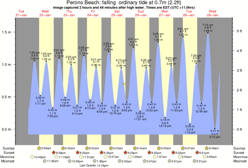 Image captured 2 hours and 48 minutes after high water (falling ordinary tide). Tide height was 0.7m (2.2 ft). Range 1.64m (5.4 ft). Toggle tide graph
