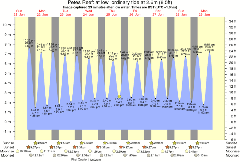 Image captured 23 minutes after low water (at low ordinary tide). Tide height was 2.6m (8.5 ft). Range 10.56m (34.6 ft). Toggle tide graph
