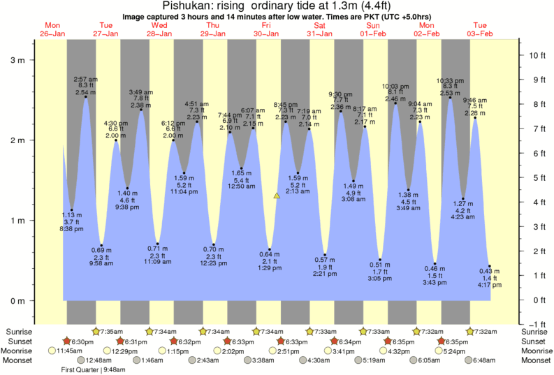 Image captured 3 hours and 14 minutes after low water (rising ordinary tide). Tide height was 1.3m (4.4 ft). Range 2.96m (9.7 ft). Toggle tide graph