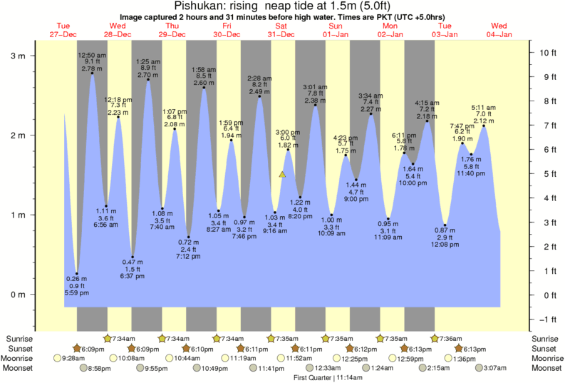 Image captured 2 hours and 31 minutes before high water (rising neap tide). Tide height was 1.5m (5.0 ft). Range 3.05m (10.0 ft). Toggle tide graph