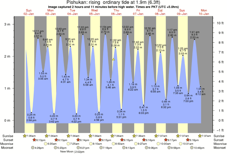 Image captured 2 hours and 11 minutes before high water (rising ordinary tide). Tide height was 1.9m (6.3 ft). Range 3.04m (10.0 ft). Toggle tide graph