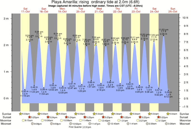 Forecast wind and swell just offshore from Playa Amarilla around the time the photo was taken