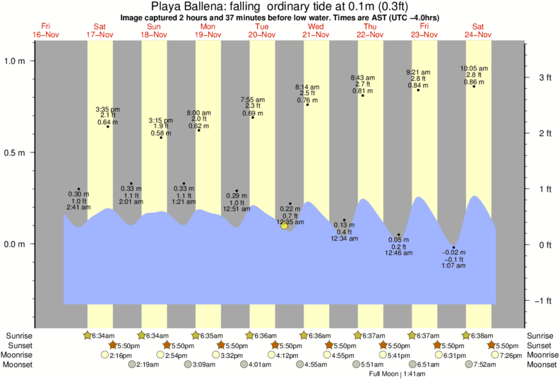 Forecast wind and swell just offshore from Playa Ballena around the time the photo was taken