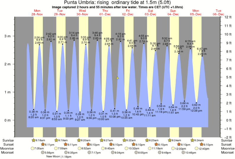 Image captured 2 hours and 55 minutes after low water (rising ordinary tide). Tide height was 1.5m (5.0 ft). Range 3.58m (11.7 ft). Toggle tide graph