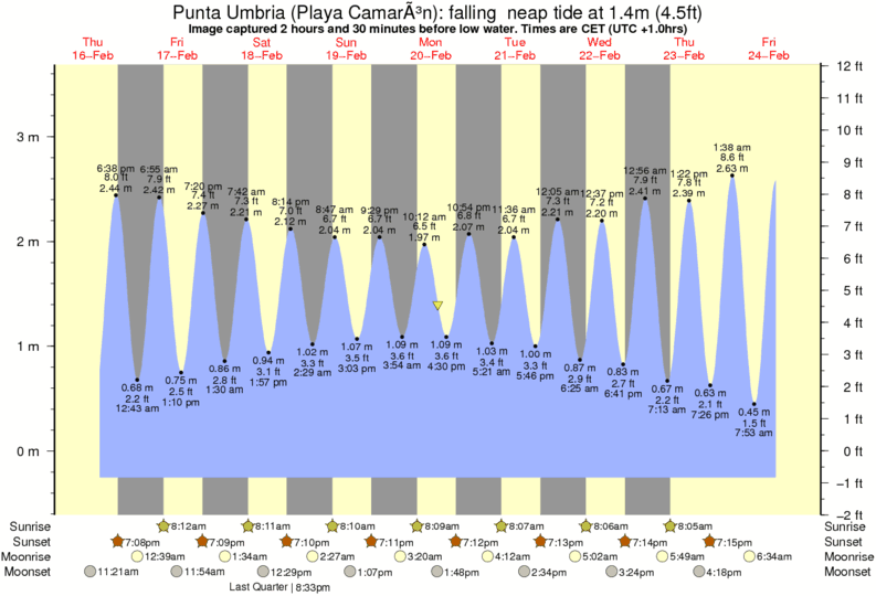 Image captured 2 hours and 30 minutes before low water (falling neap tide). Tide height was 1.4m (4.5 ft). Range 3.58m (11.7 ft). Toggle tide graph