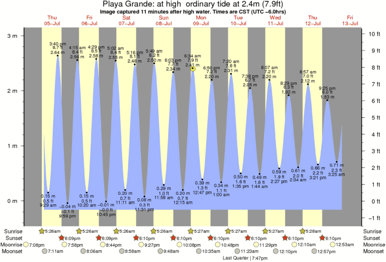 Forecast wind and swell just offshore from Playa Grande around the time the photo was taken